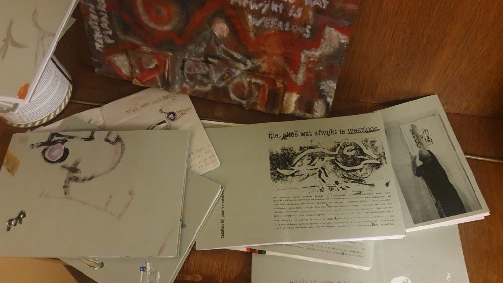 met bijdragen van Austeja Zvirblyte, Adrian Borland, thnk u, Michaela Lilla Bos, en met tekst van Marinus vander Lubbe (dank Martin Schouten) en Samuel Beckett en een klein gedichie van Ingrid Jonker, geciteerd.